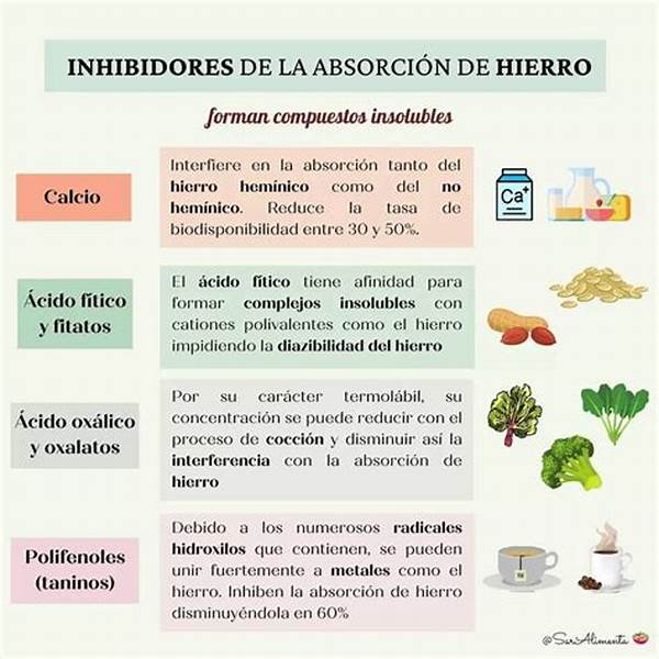 La disminuida absorción de hierro debido a inhibidores puede llevar a consecuencias significativas en la salud. Un aporte insuficiente de hierro puede causar anemia, caracterizada por fatiga, debilidad y, en casos severos, dificultad para respirar. Estos efectos pueden ser más pronunciados en grupos vulnerables como niños, mujeres embarazadas y ancianos. Además, una deficiencia persistente de hierro puede afectar el desarrollo cognitivo y la respuesta inmunológica. Por ello, es esencial estar consciente de la presencia de inhibidores de absorción de hierro en la dieta y tomar medidas correctivas para asegurar un adecuado aporte de este mineral vital.